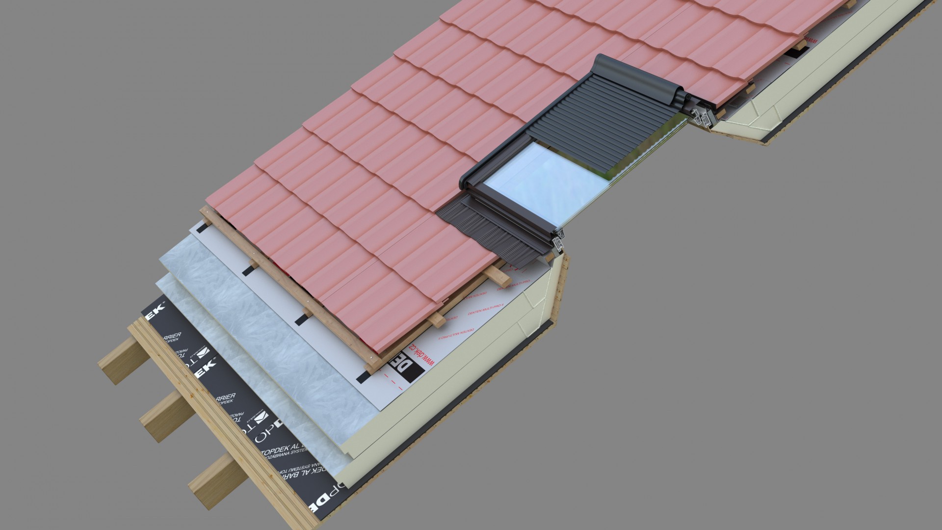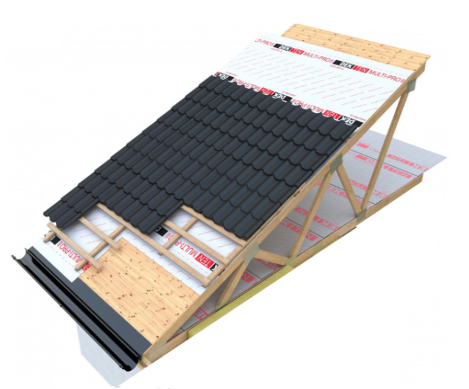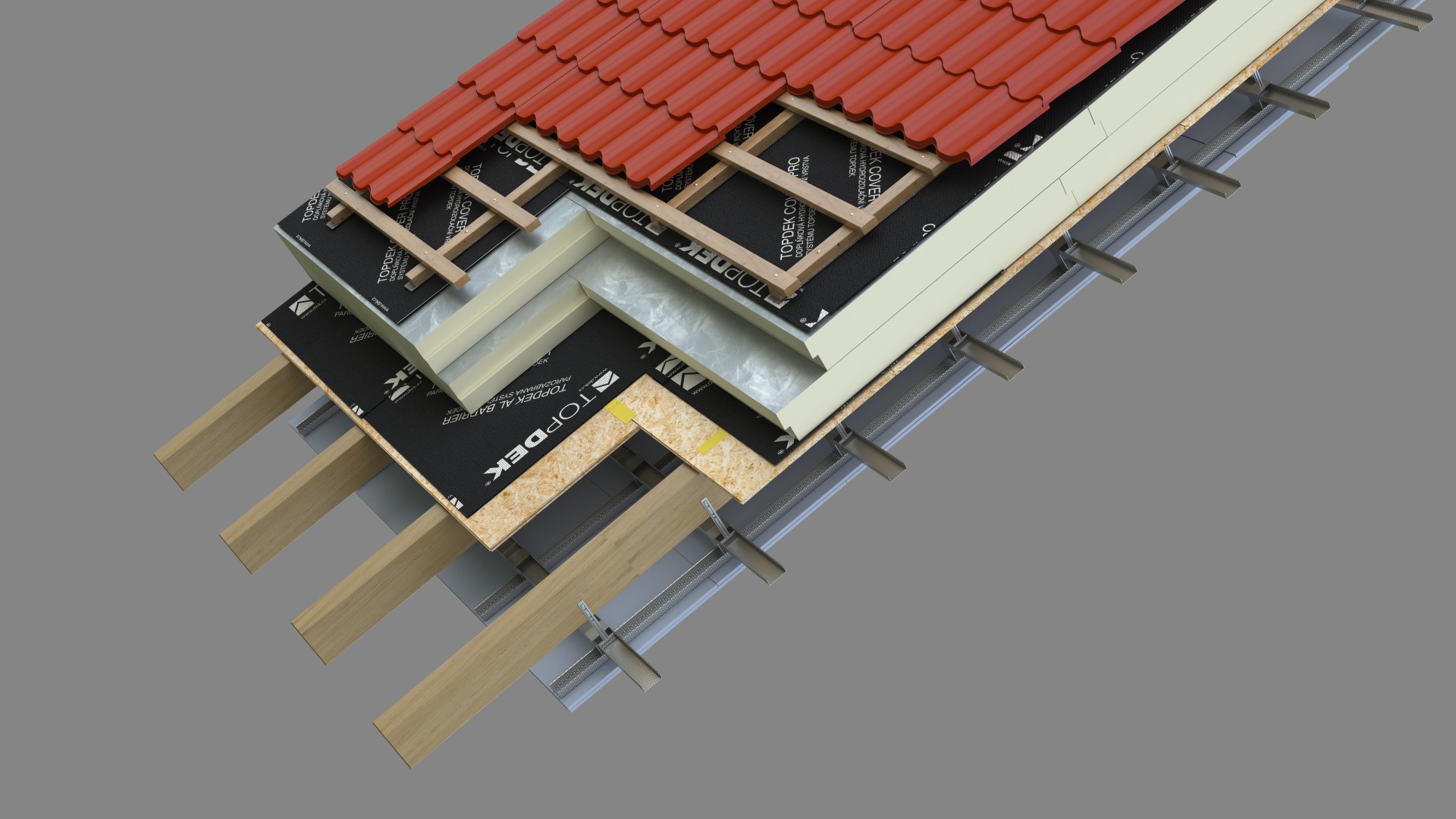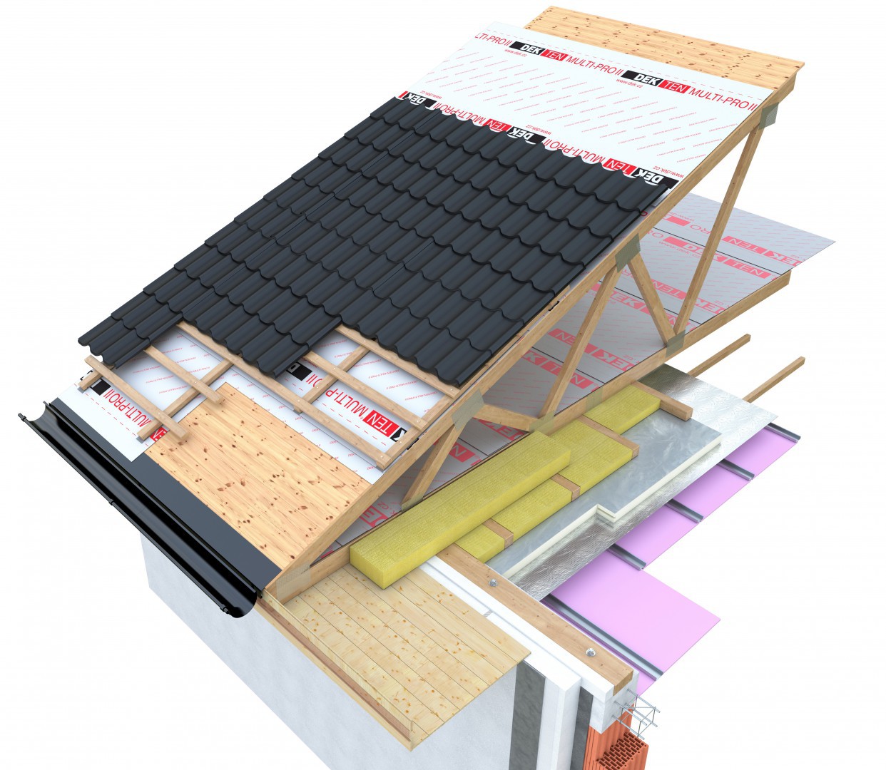 dvouplášťová, se skládanou krytinou, DHV z lehké fólie, nosná konstrukce vazníkový krov na prefamonolitickém stropě