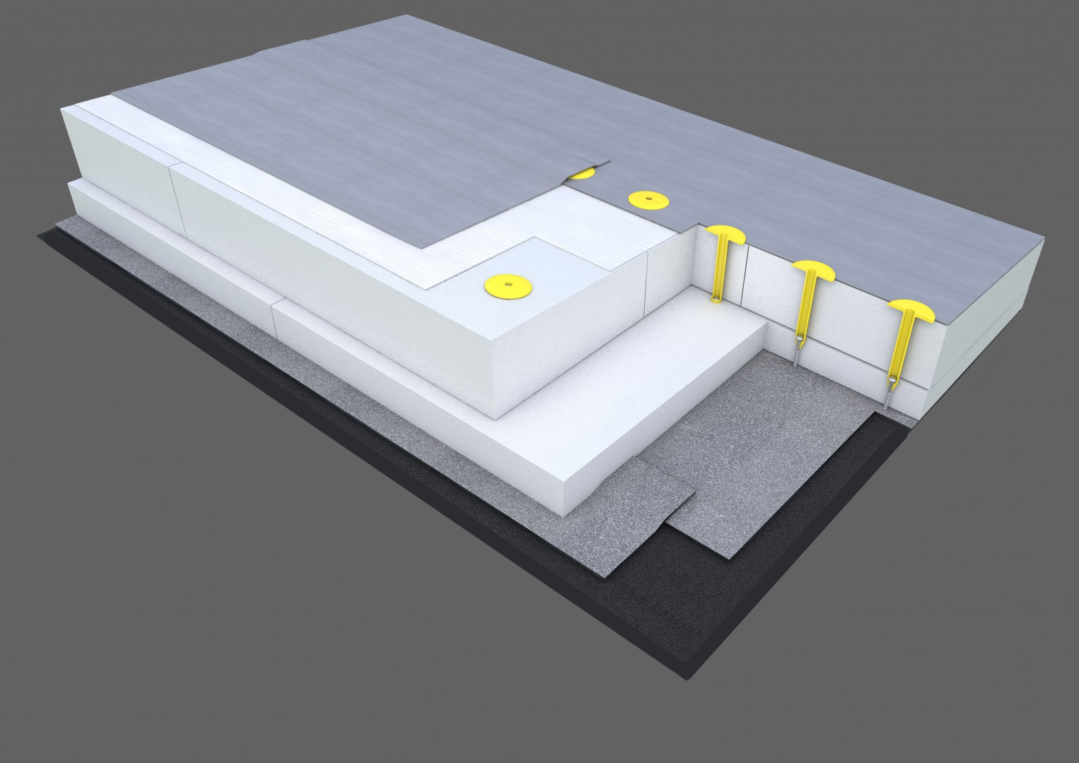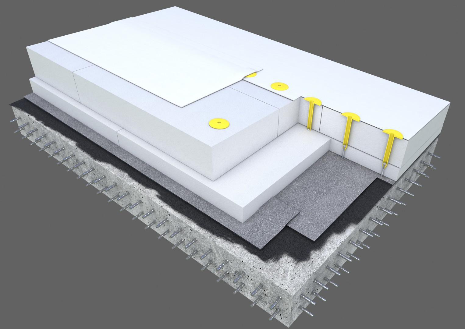 na stropě, roznášecí vrstva betonová mazanina, izolace z pěnového polystyrenu