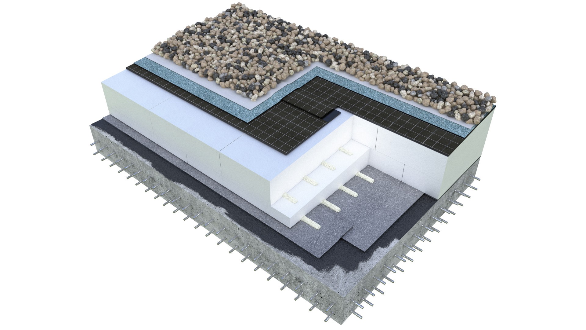 jednoplášťová, bez provozu, s povlakovou hydroizolací, fólie TPO/FPO, kotvená, povrch tvoří hydroizolace, nosná konstrukce prefamonolitický strop