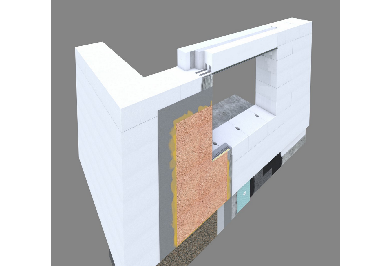 ze zdicích prvků, keramických, na zdicí pěnu, vnější povrch tenkovrstvá pastovitá omítka, vnitřní povrch malba