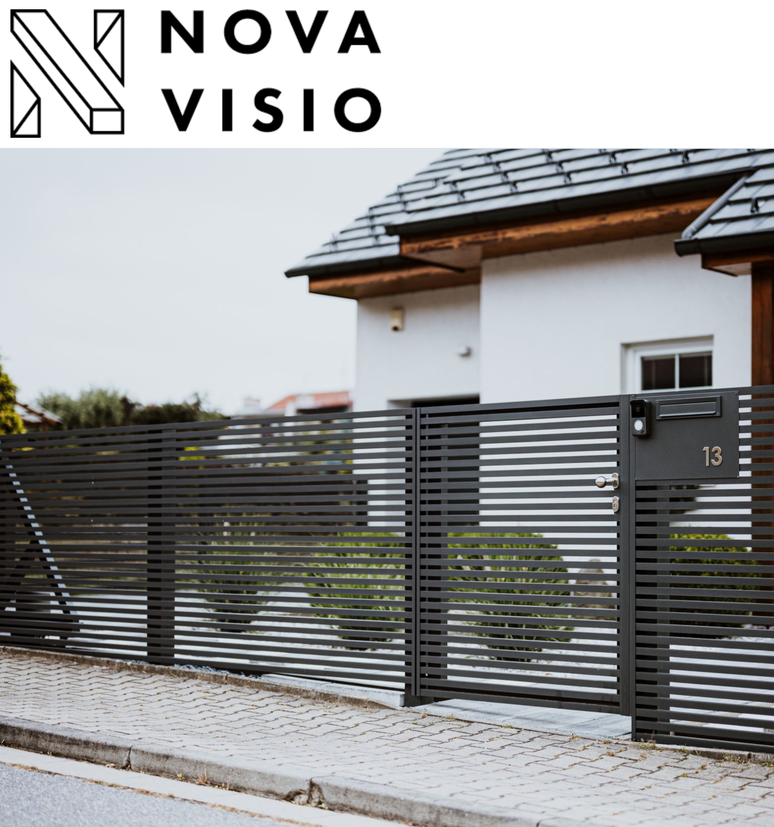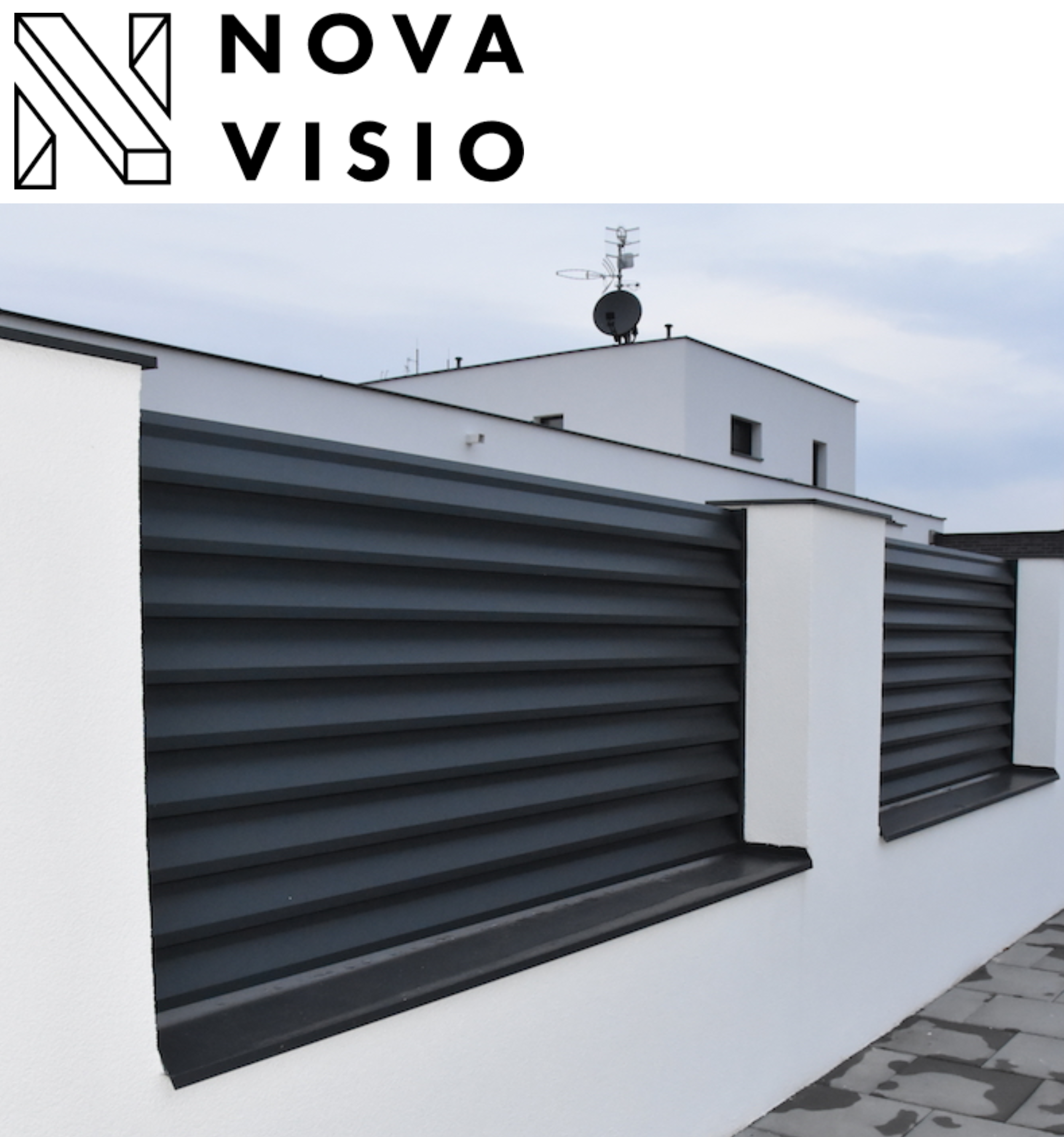 Okenicový plot s označením NOVA je nejprodávanější hliníkový plot v nabídce firmy Novavisio. Hliníková lamela připomíná vzhled venkovních žaluzií, které jsou pro dnešní novostavby velmi oblíbené. Díky tvaru lamely můžete zvolit plot zcela neprůhledný nebo s větší mezerou může být průhledný. Standardně se plot vyrábí v horizontálním uložení lamel, ale lze ho instalovat i s vertikálně uloženými lamelami. Maximální rozměry okenicového plotu jsou až š. 6000 x v. 6000 mm. Podle šířky, výšky nebo celkové plochy používáme různé typy výztuh pro dokonalou pevnost vašeho plotu.